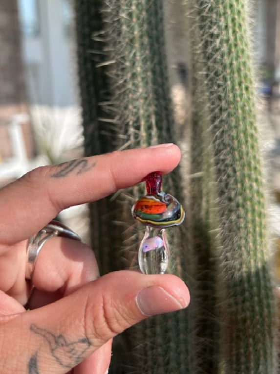 hand blown glass opal mushroom pendant, comes on a suede cord