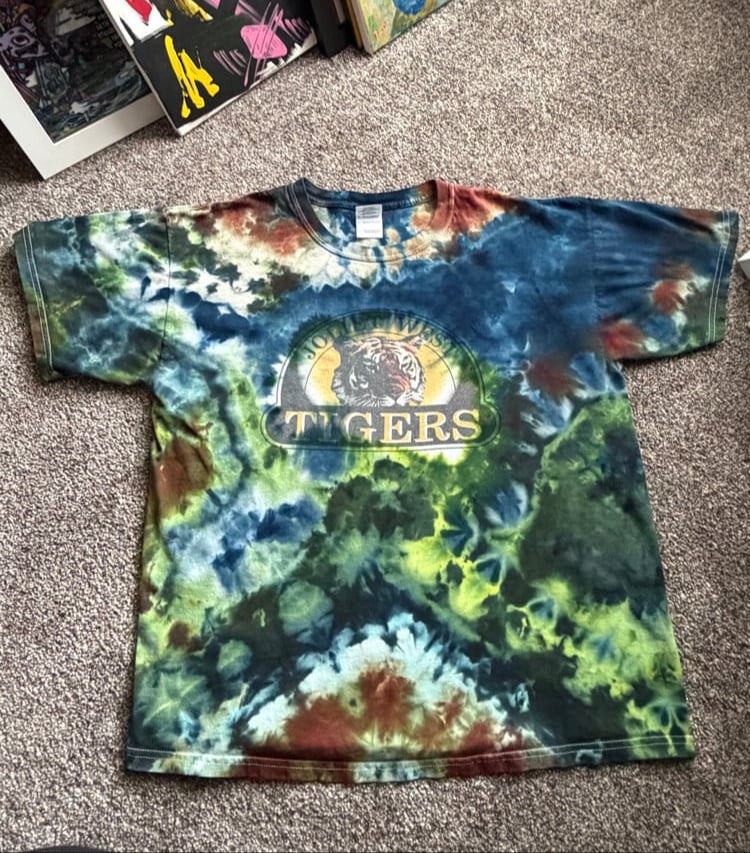 anabesmoking 1/1 up-cycled hand dyed t-shirt, size L! my passion to incorporate more sustainability within my life and my art is growing by the day, this new project is dedicated to make an impact in clothing waste in the ways i can - thanks for looking!