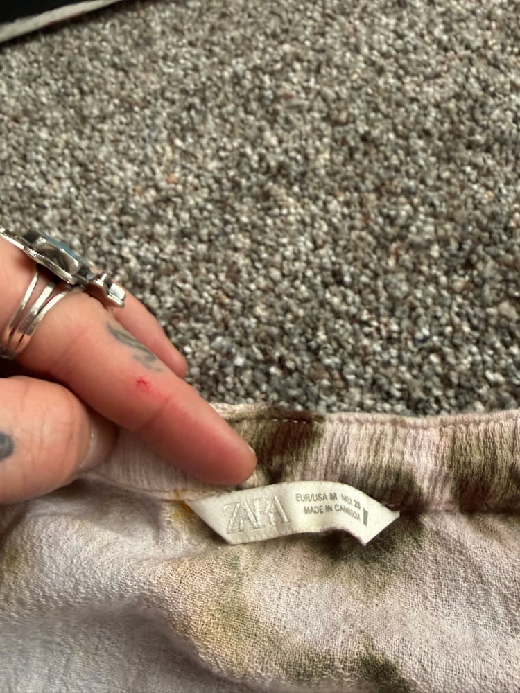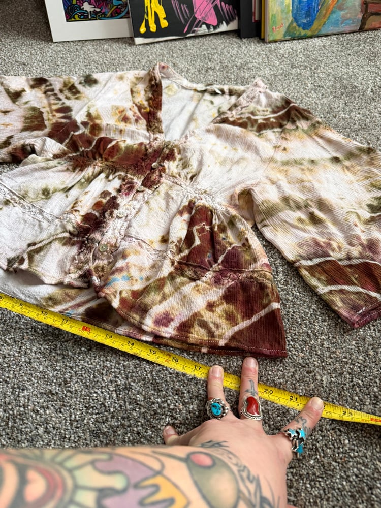 anabesmoking 1/1 up-cycled hand button up cotton blouse, size M! my passion to incorporate more sustainability within my life and my art is growing by the day, this new project is dedicated to make an impact in clothing waste in the ways i can - thanks for looking!